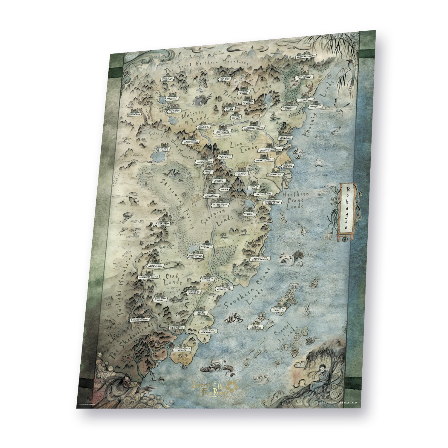 A lavish map of Rokugan, from the artisan cartographers of the Miya family.