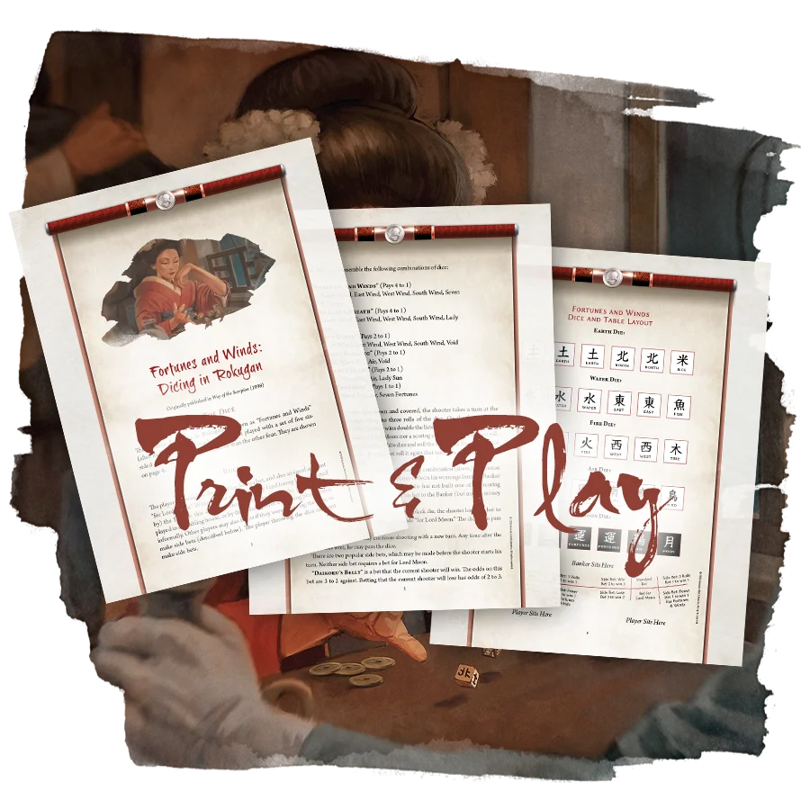 Kage’s legacy as a Kolat Master extended past the famed Day of Thunder tournament. In September of 1998, the Return of the Kolat Master tournament was held at Gen Con UK. The winner determined which of the Great Clans had kept Kage hidden after he faked his own death, and which clan would benefit from Kage’s secret warning about a new threat to Rokugan. According to the records of Kitsu Sei (aka Neil Laughlin), the final match was fought between two Crane players, and Kage was revealed to have been hiding amongst that otherwise-upstanding clan.
